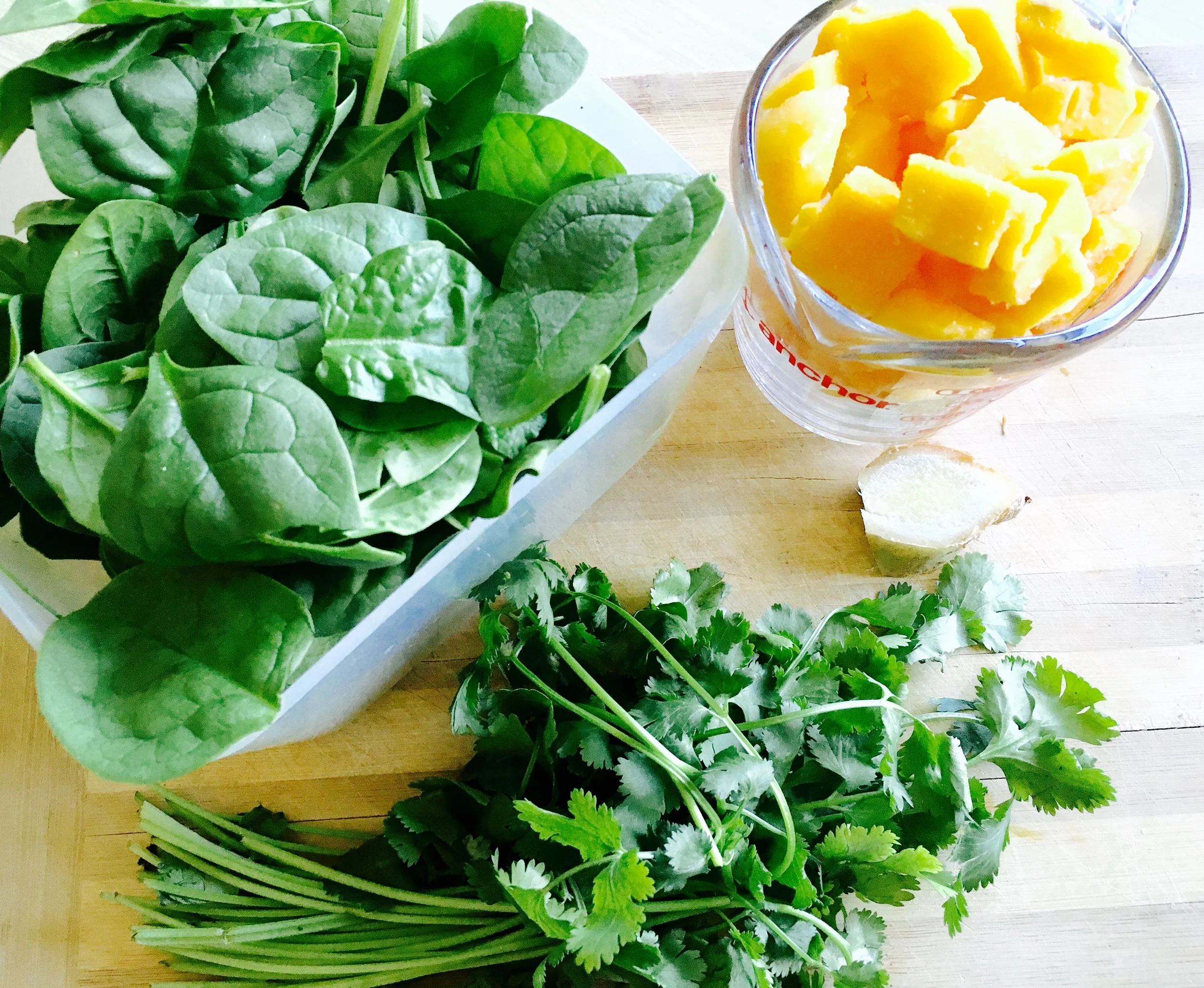 My favorite green base is the spinach. Spinach is a very accommodating green. It doesn't force its own flavor on others so it is quite versatile for any combination.